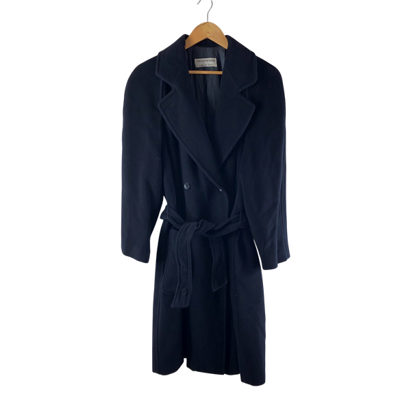 エンポリオアルマーニ EMPORIO ARMANI コート チェスターコート ダブルボタン ウエストベルト ウール イタリア製 ネイビー 紺 38サイズ 984565