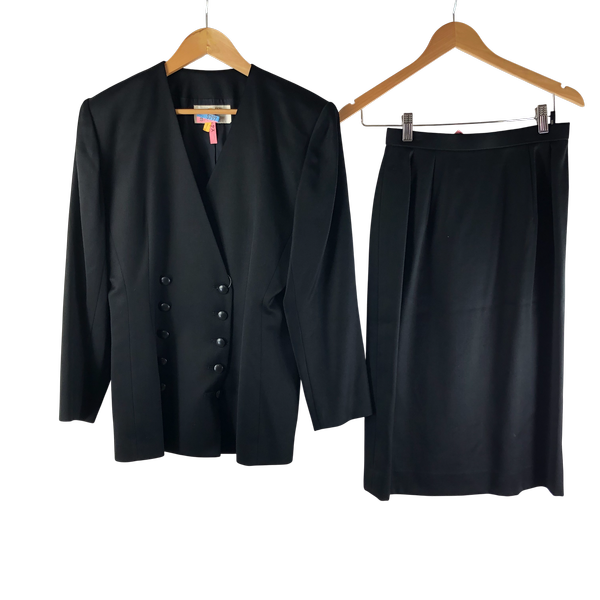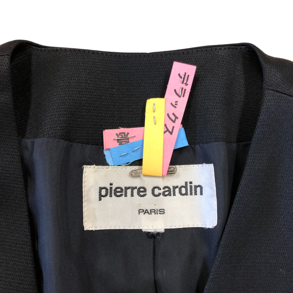 ピエールカルダン pierre cardin スーツ ジャケット ノーカラージャケット スカート 裏地付き スカートスーツ 黒 983030