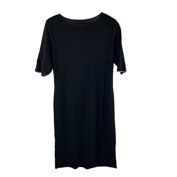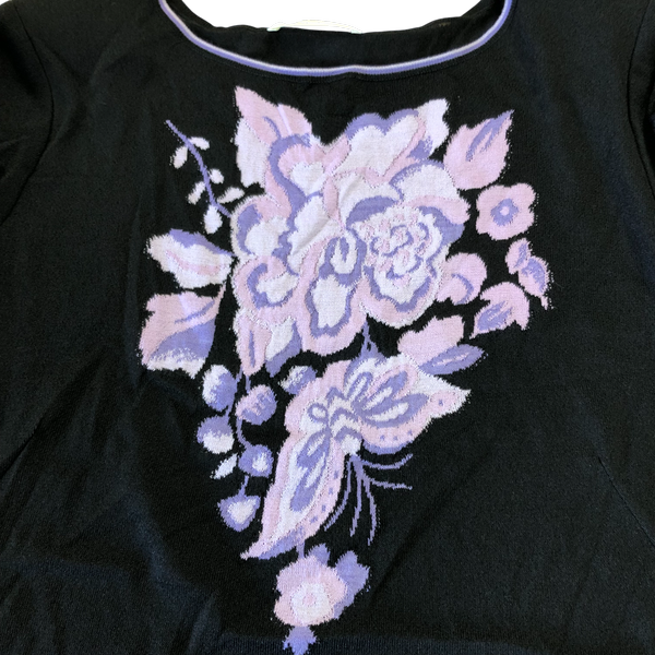 シックなブラックに紫のフラワー柄が映える、大人っぽさ漂うワンピースです。