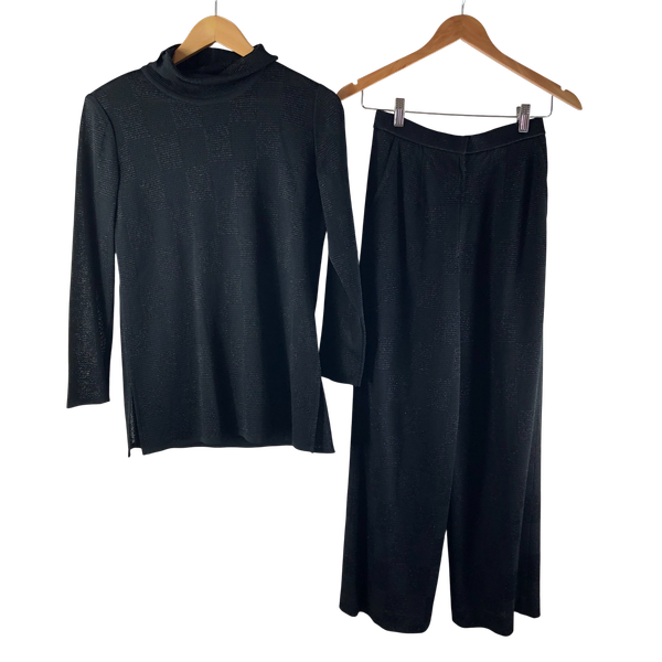 バーモス Vamos LOTAIL セットアップ 長袖カットソー ハイネック 肩パット パンツ ラメ入り生地 黒 977579