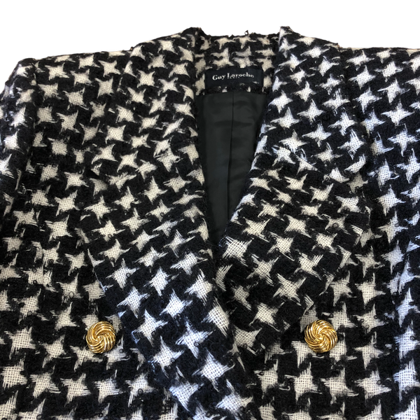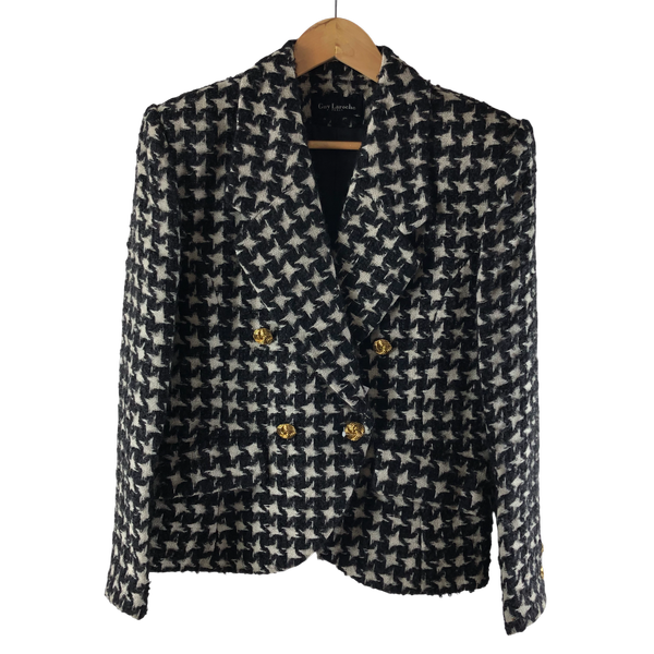 ギラロッシュ Guy Laroche ジャケット ツイードジャケット 千鳥柄 裏地付き ゴールドボタン 黒 白 40サイズ 983033