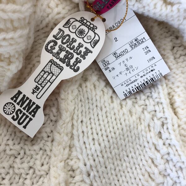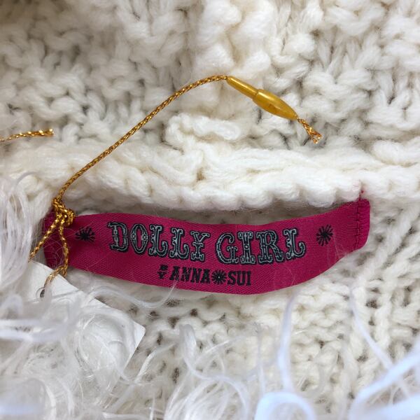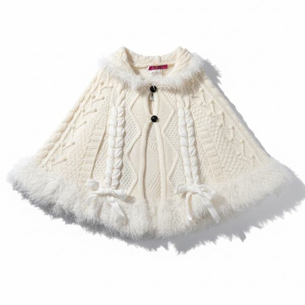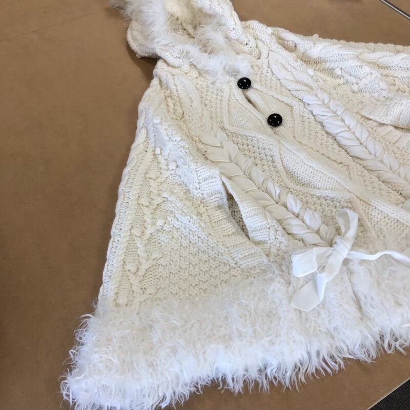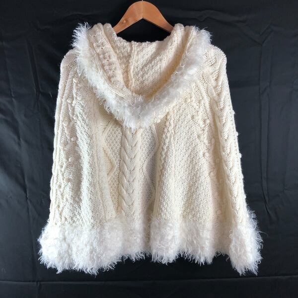 ドーリーガールバイアナスイ DOLLY GIRL BY ANNA SUI ポンチョ カーディガン ケーブル編み リボン フード ファー 白 2サイズ 986705