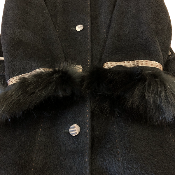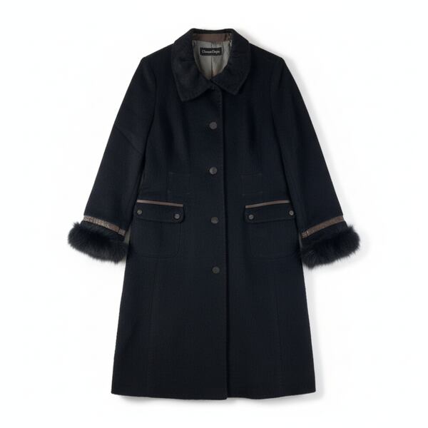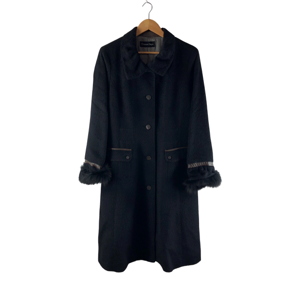 シャミーデポ Chamois Depo コート ロング ステッチ ファー袖 デザインボタン アルパカ 黒 42サイズ 987588