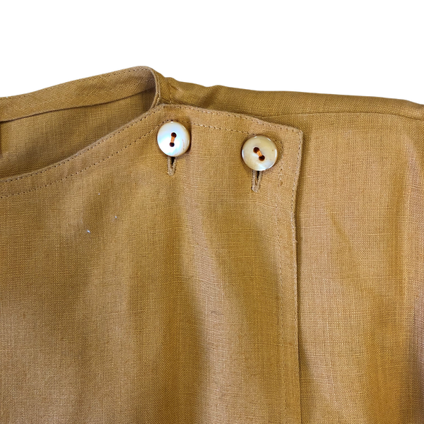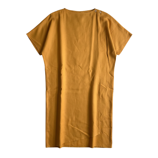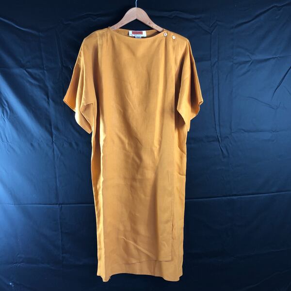 落ち着いたマスタードカラーが大人っぽく、さらっと一枚で着映えするワンピースです。