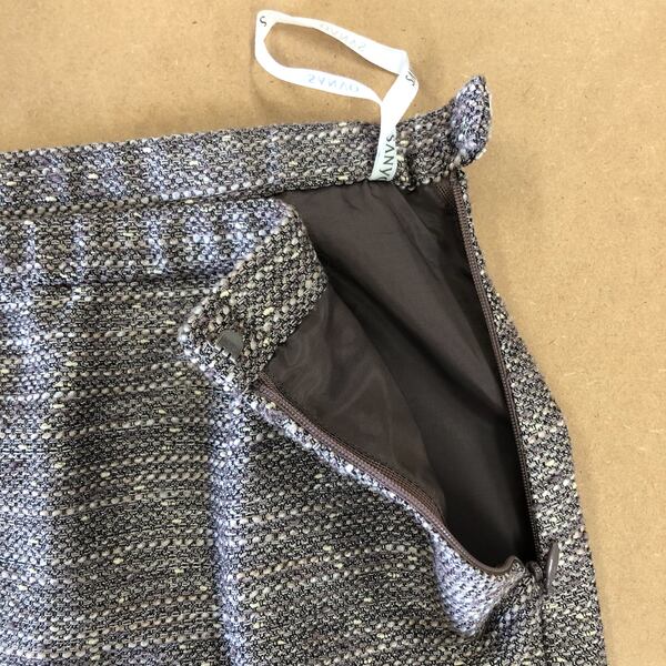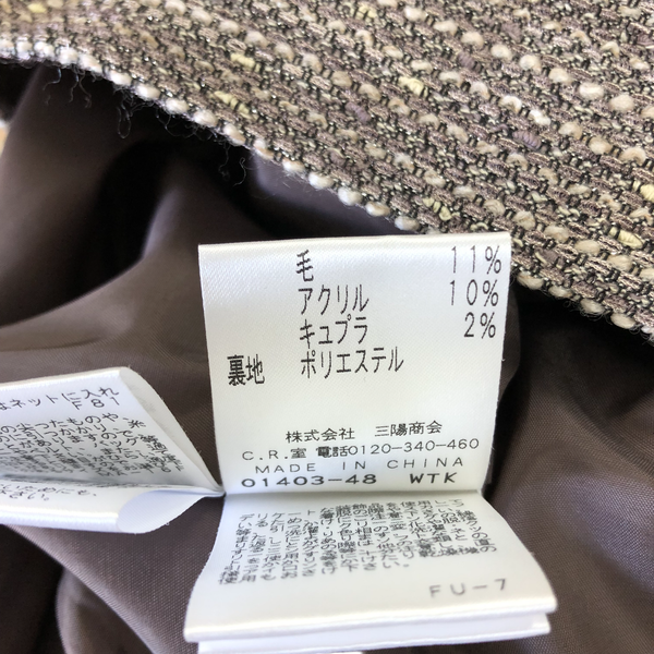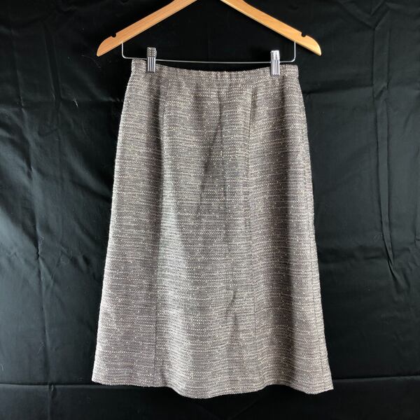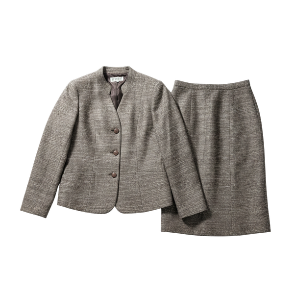 落ち着いたミックスツイード素材が上品な、ジャケットとスカートのセットアップです。