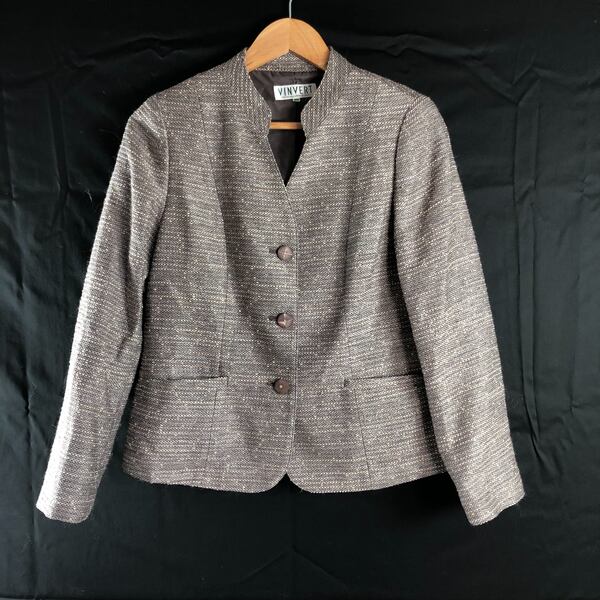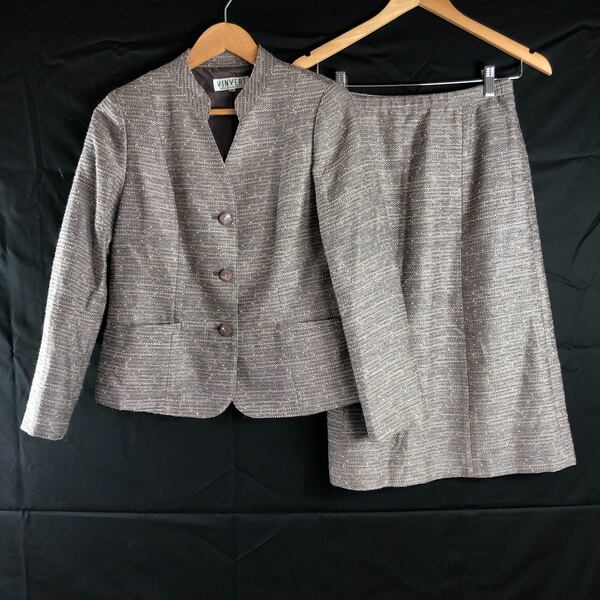 バンベール VINVERT セットアップ スカートスーツ ツイード ラインストーンボタン グレージュ系 9ARサイズ 986745